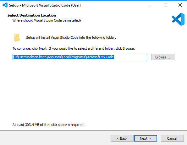 Then, at that point, the next window will ask you select your destination installation location. I will leave this as default and then Click on Next.