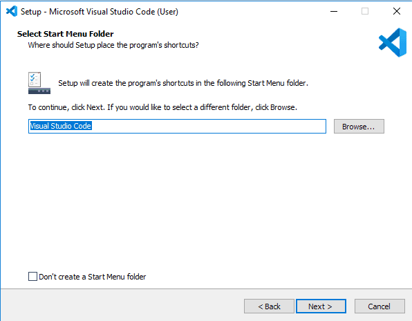 Here it will ask to setup the program shortcuts location. I will leave this as default. If you want to set different location then you can tap on Browse and change the location. On the off chance that you would prefer not to create a Start Menu folder then you can click this option too on the bottom of the screen as displayed underneath. Then, at that point, Click on Next.