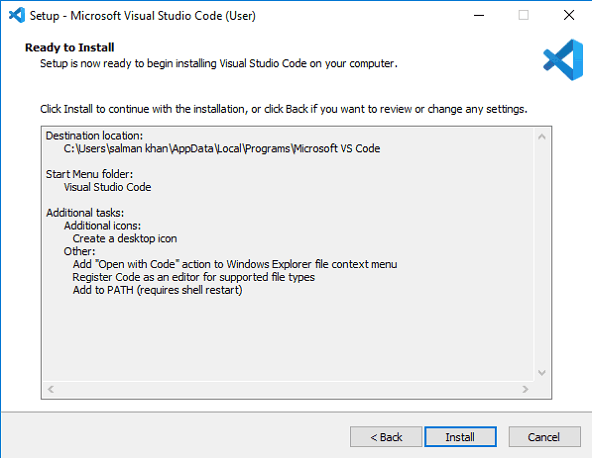 Then, at that point, the next screen is to set the extra tasks like Register code as an editor for supported files types, create a desktop icon, Add “Open with Code” action to Windows Explorer file context menu etc. the present, we are using the default selection, so I will simply tap on Next.